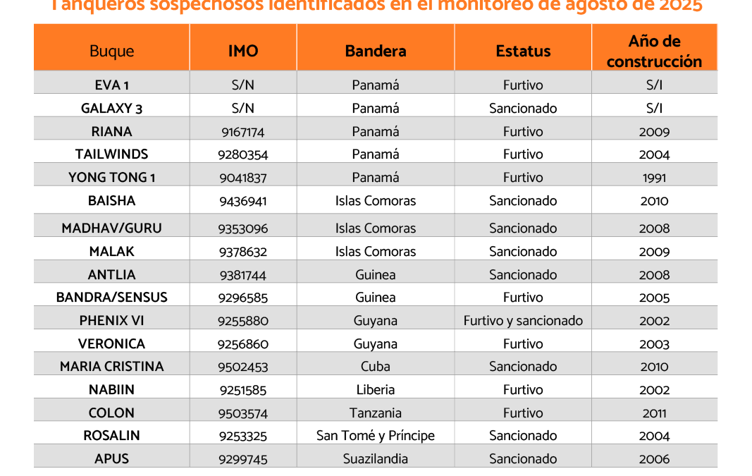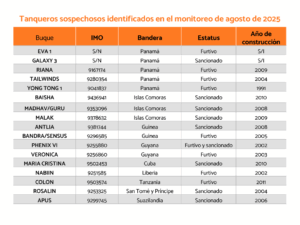 Tanqueros sospechosos identificados en el monitoreo de agosto de 20256