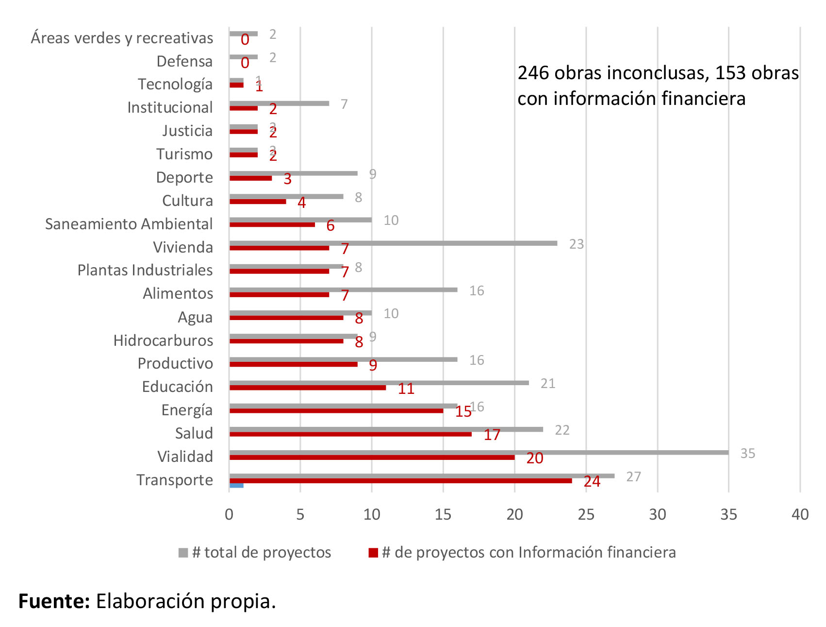 Distribución sectorial de obras inconclusas